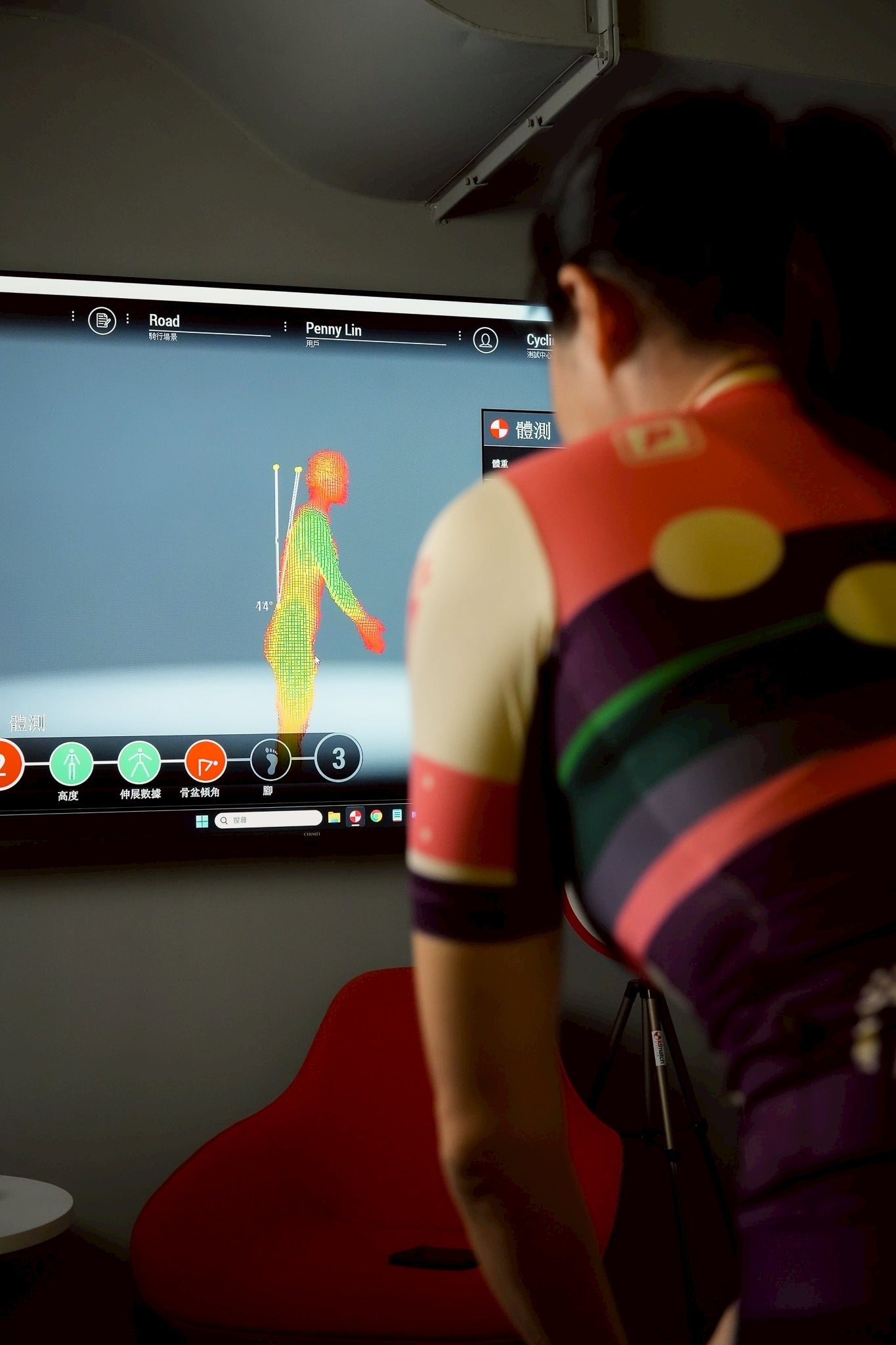 因此在流程上:訪談暖身、觀察、搜集資料、調整卡鞋、模擬車實戰、調整部件、騎姿建議,所有步驟皆缺一不可。