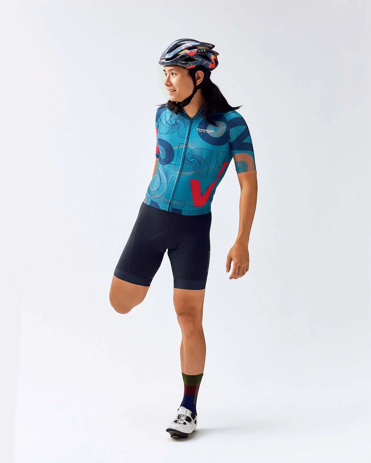 上身部分採用輕盈網眼面料以促進吸濕排汗效果,並採用激光技術裁剪褲腿,以確保騎乘褲管能完美服貼。