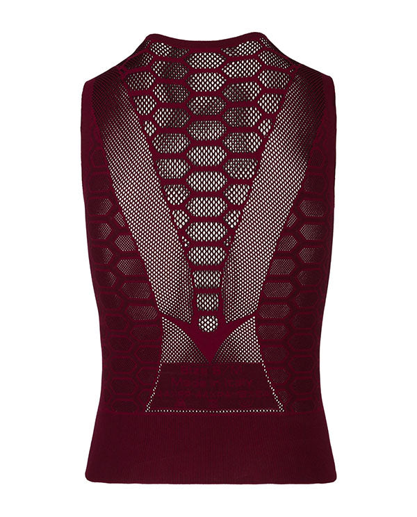 Q36.5 無袖底衫,使用了最先進的卡爾邁耶無縫編織機,面料採用無接縫結構製作,但具有多種整合結構和密度,為身體不同的易流汗處加強吸濕排汗。